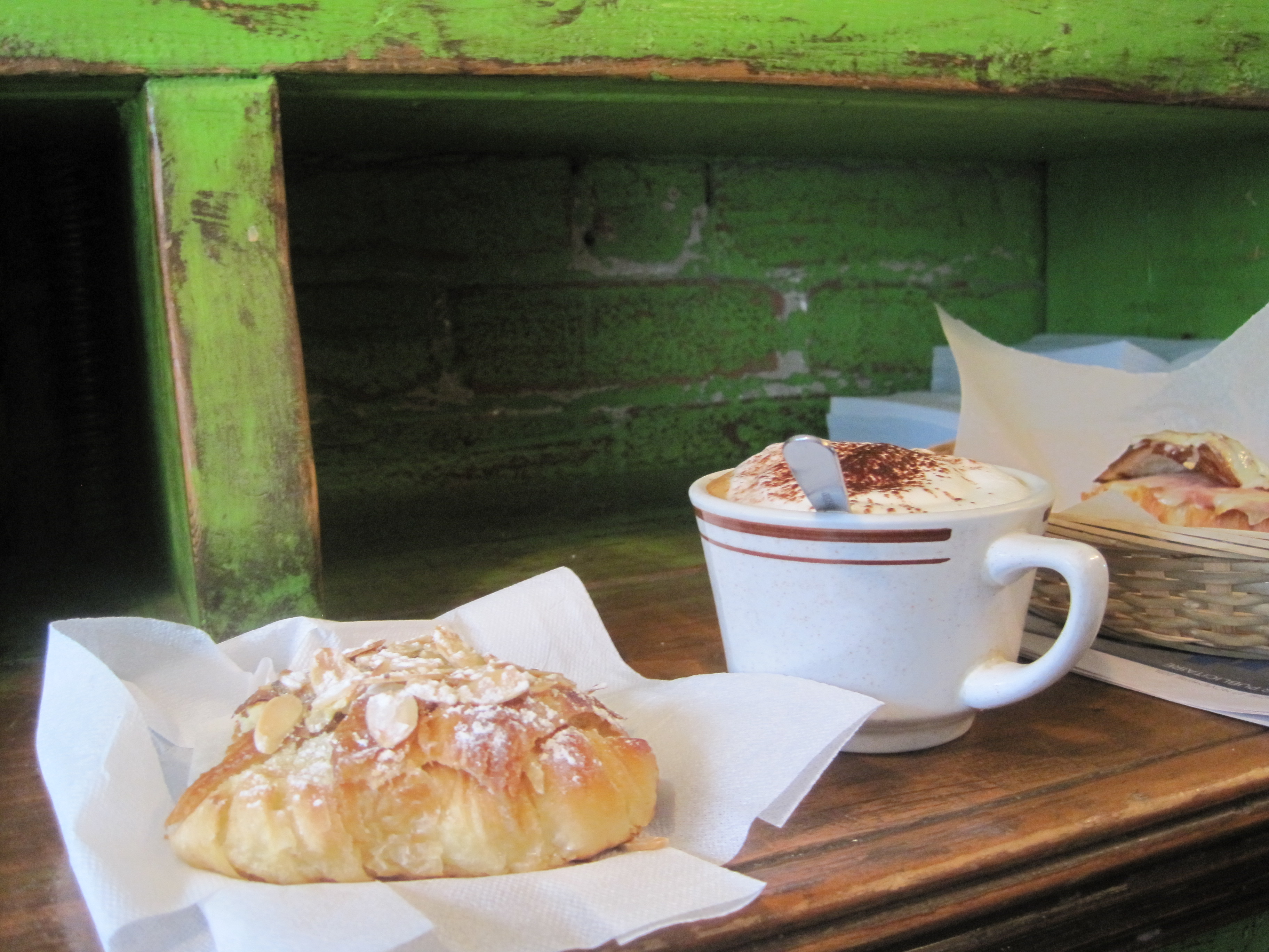 In the process of dismantling her home we packed and delivered to Greyhound Express three large plastic containers of the heavy items – books and boots and some dishes she was fond of, as well as her record player and records. Did I mention she had convinced us to purchase an actual record player as a birthday gift and I could never dissuade her from adding to her load of Montreal possessions by carting Led Zeplin, Fleetwood Mac and Three Dog Night records from our basement collection every trip she took home to Alberta.  A little table and one chair had been sold on Craigslist, two second hand book stands were given away to an apartment neighbour, and friends had come to claim some of the most intriguing prints, along with the utilitarian warm clothes Lily was ready to part with. The guy she found to sublet for the remaining of the lease, got a steal of a deal on her bed and mattress and Lily directed me to leave him the never used cake pans and muffin tins, saying, “See Mom, I told you four years ago I wasn’t going to become a baker.” IMG_3987 We ate our meals at my favourite creperie the last day – having done a far better job of diminishing the contents of her refrigerator than the contents of her apartment, so that we would still have to show up at the airline counter and have no choice but to pay for extra suitcases, and still have purses cleverly tucked into overstuffed backpacks, and carry-on computer cases, probably with the last used towels falling out of them.